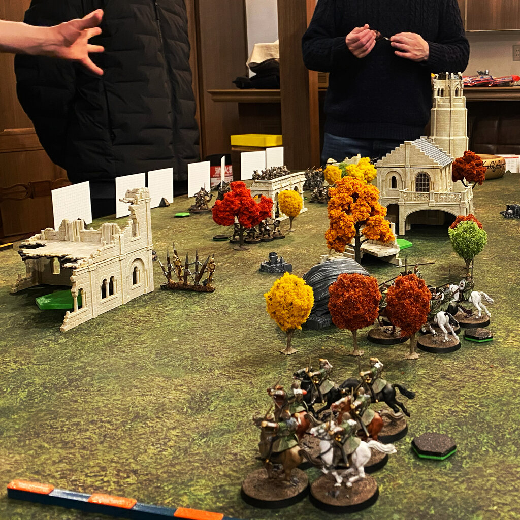 My side took the central building initially, but with the intervention of the troll we were denied it. First turn of holding, 1 point, second turn 2 points, etc. We conceded after our adversary reached 6 points.